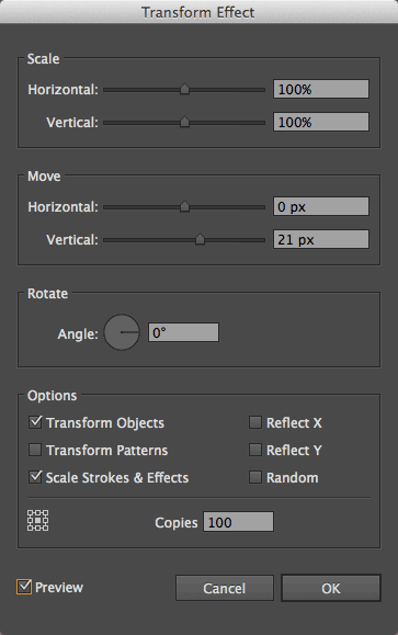 Adobe Illustrator Transform Effect dialog box